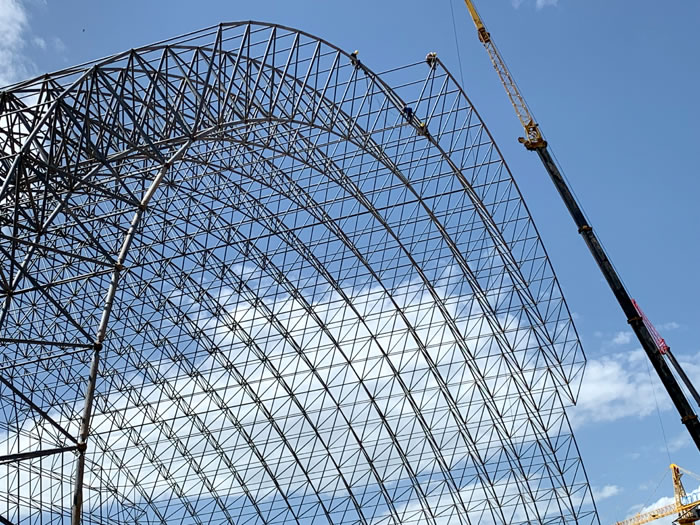 (2)网架加工前应对现场尺寸进行复测,确认无误后方可进行加工、安装;网架制作、运输、安装应遵守《空间网格结构技术规程》JGJ7-2010、《钢网架洛阳螺栓球节点》JG/T 10-2009、《钢网架洛阳螺栓球节点用高强度螺栓》 GB/T 16939-2016、《洛阳钢结构洛阳工程洛阳施工规范》 GB50755-2012、《洛阳钢结构洛阳工程施工质量验收标准》 GB50205-2020。